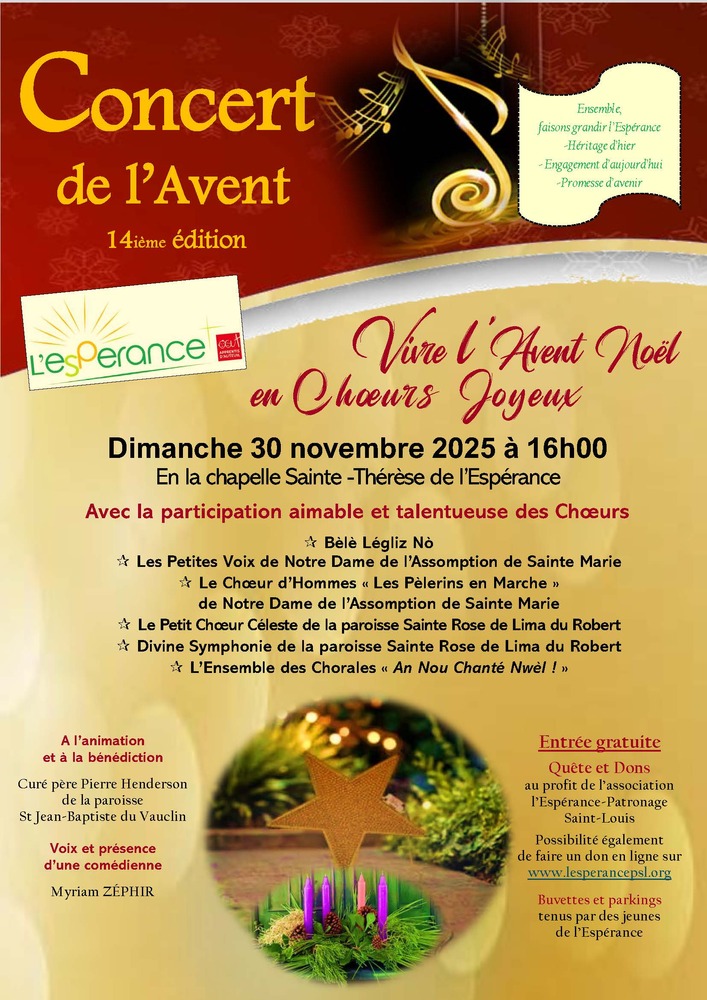 Concert traditionnel de l'avent de l'Espérance le Dimanche 30 novembre 2025 à 16H00 - Entrée gratuite